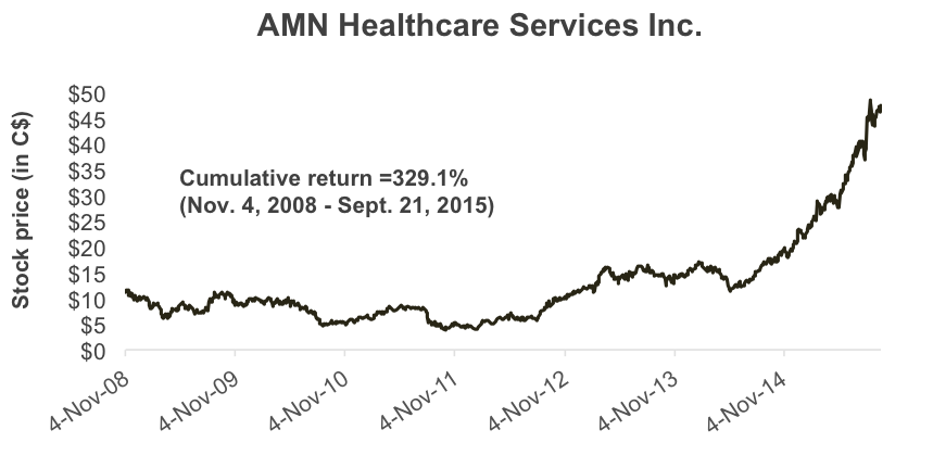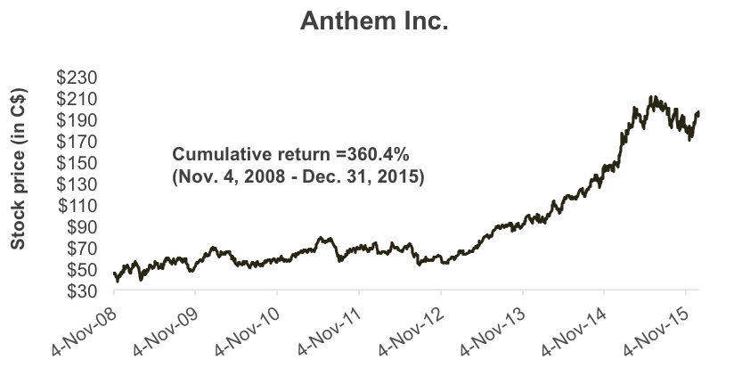 Source: Bloomberg, LP. Cumulative total return of the stock for holding period.
