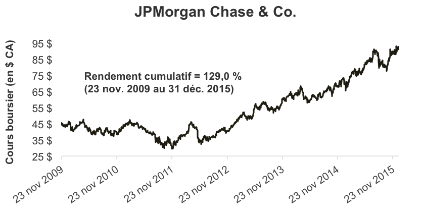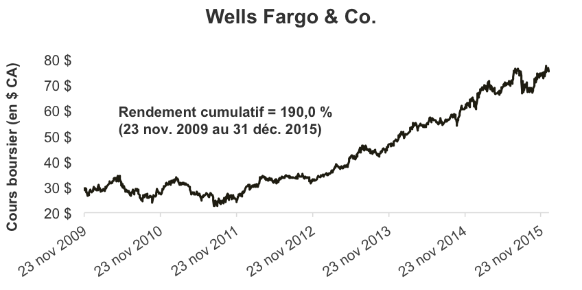 Nous avons acheté le titre de deux banques américaines dont les bilans étaient surcapitalisés, dont les dirigeants étaient chevronnés et qui étaient susceptibles de gagner des parts de marché plus importantes que celles de leurs concurrents.