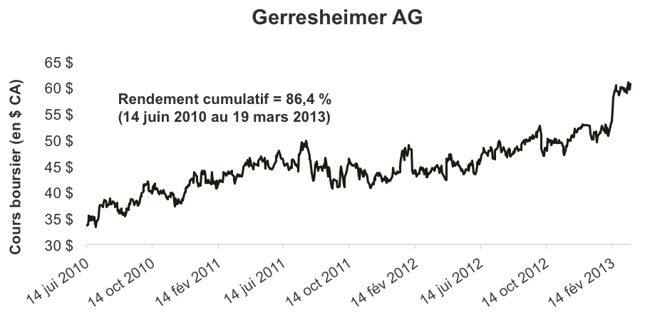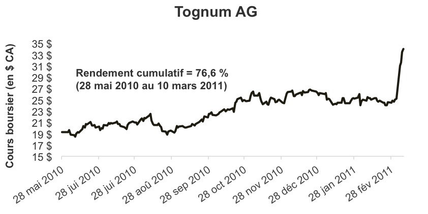 Source : Bloomberg, LP. Rendement cumulatif total de l’action depuis la date d’acquisition.
