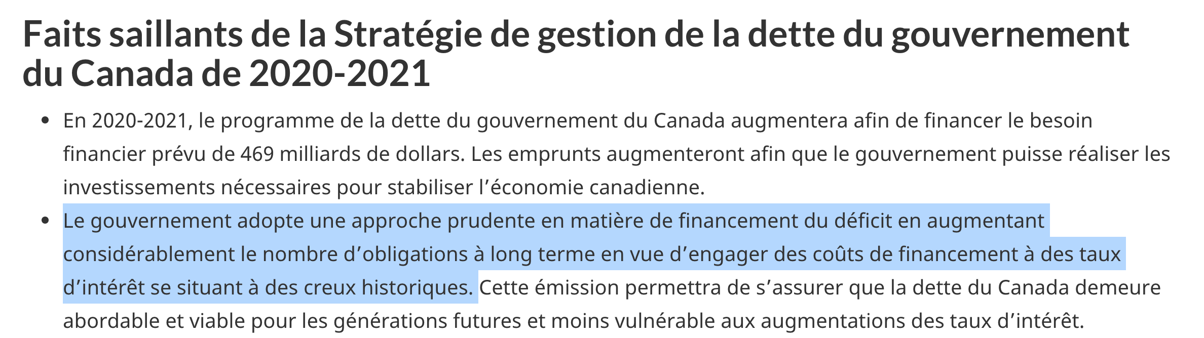 iii Canada. Gouvernement du Canada. Stratégie de gestion de la dette de 2020-2021, annexe 3. Canada, 2020. https://www.canada.ca/fr/ministere-finances/services/publications/portrait-economique-budgetaire/strategie-gestion-dette-2020-2021.html