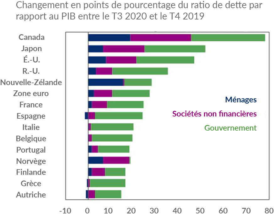 Source : Heaven, Pamela. « Posthaste: Canada is leading the ‘debt tsunami’ now sweeping the world ». Financial Post, 19 novembre 2020. https://financialpost.com/executive/executive-summary/posthaste-canada-is-leading-the-debt-tsunami-now-sweeping-the-world.