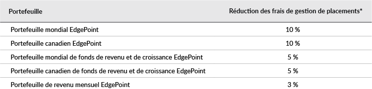 Les portefeuilles EdgePoint ne sont pas disponibles par l'intermédiaire des courtiers à escompte.