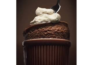 Soufflé au chocolat au lait avec chantilly au nougat