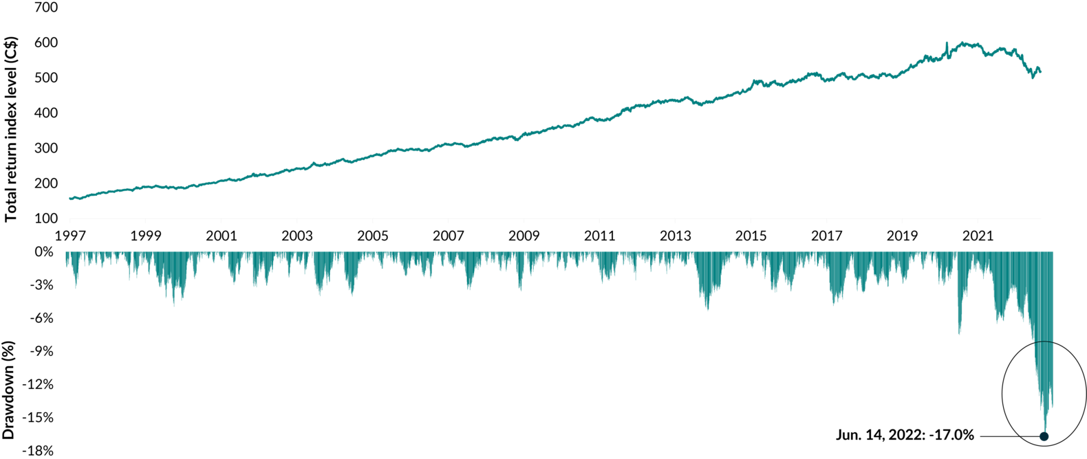 Source: FactSet Research Systems Inc. As at August 31, 2022. Drawdowns calculated in C$.