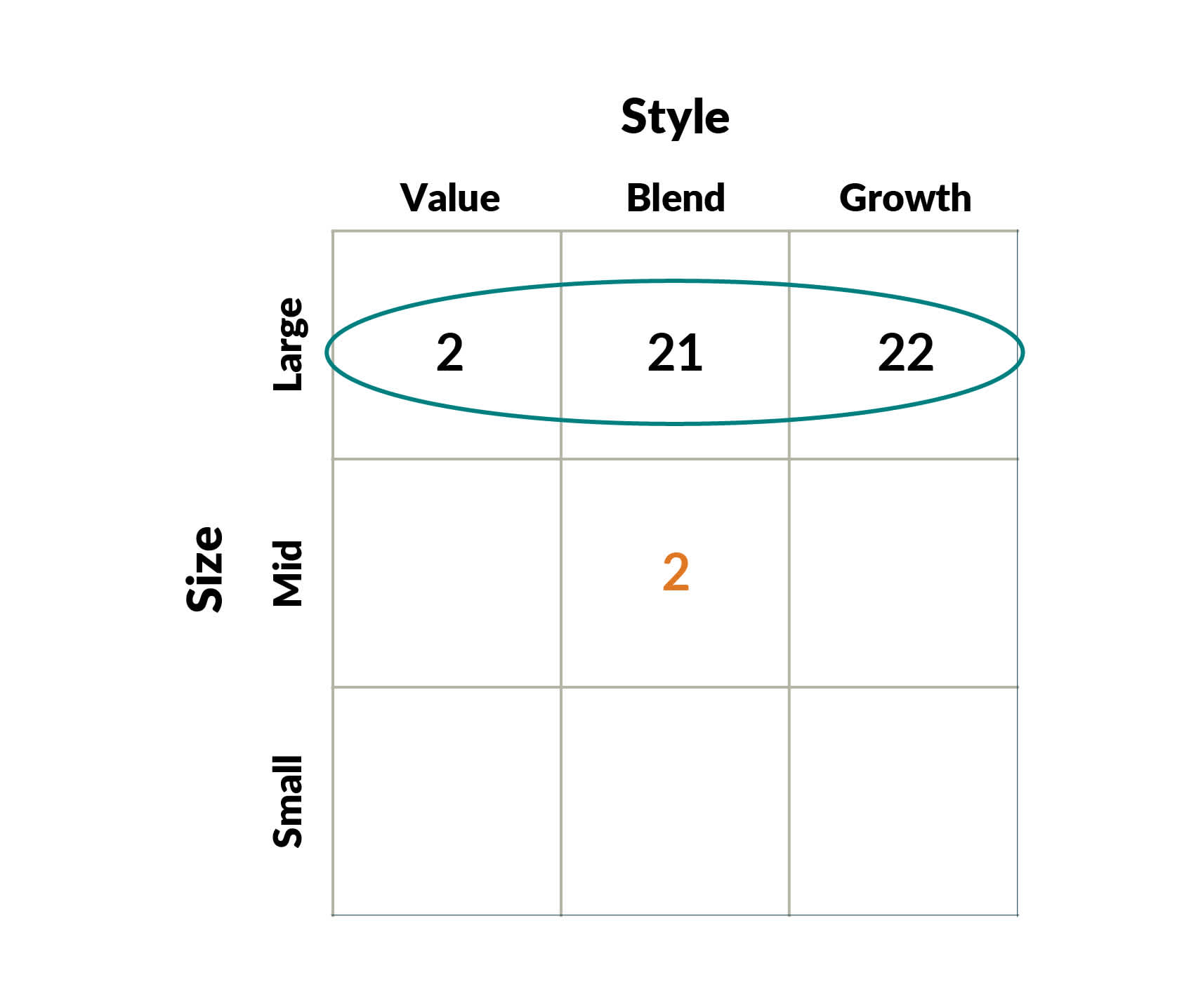 What’s EdgePoint doing today? Morningstar, according to its Style Classification, categorizes EdgePoint Global Portfolio as investing in medium-sized companies using a blend of value and growth styles (or what we call “buying growth without paying for it”). Our Global Equity peers are mirroring the market, with 45 funds (or 96%) classified as large cap and 22 (47%) as large-cap growth.