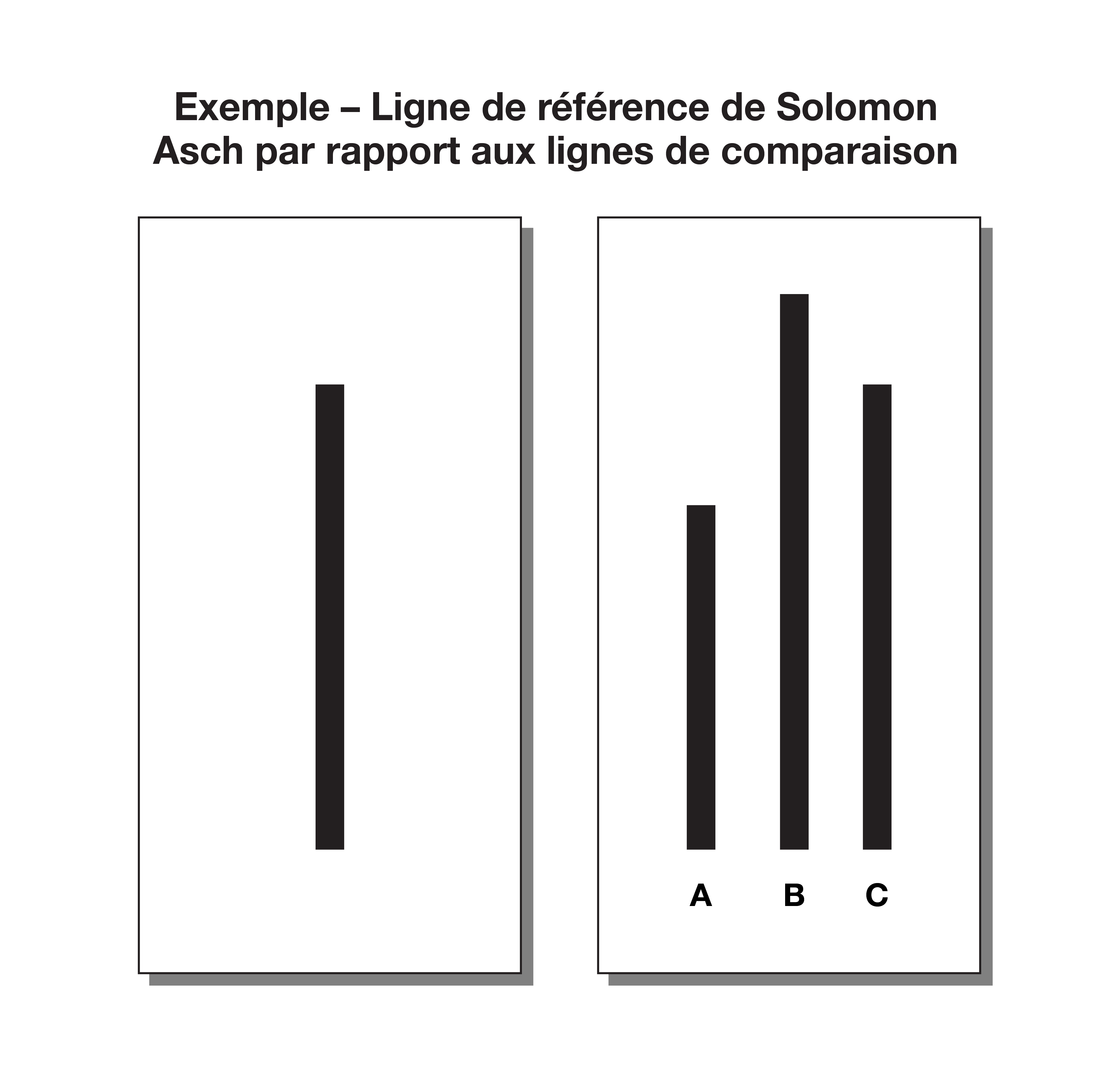 L'exercice en lui-même était simple. On montrait aux participants une ligne cible et on leur demandait d'identifier laquelle des trois lignes de comparaison correspondait à celle-ci. Dans une partie de l'expérience, les complices donnaient la bonne réponse. Dans une autre, ils donnaient délibérément la même réponse erronée avant que le véritable participant ne réponde.