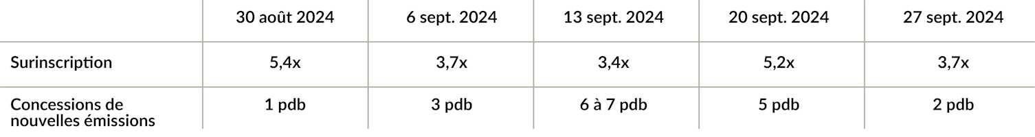 Nouvelles émissions obligataires – concessions et sursouscriptions
