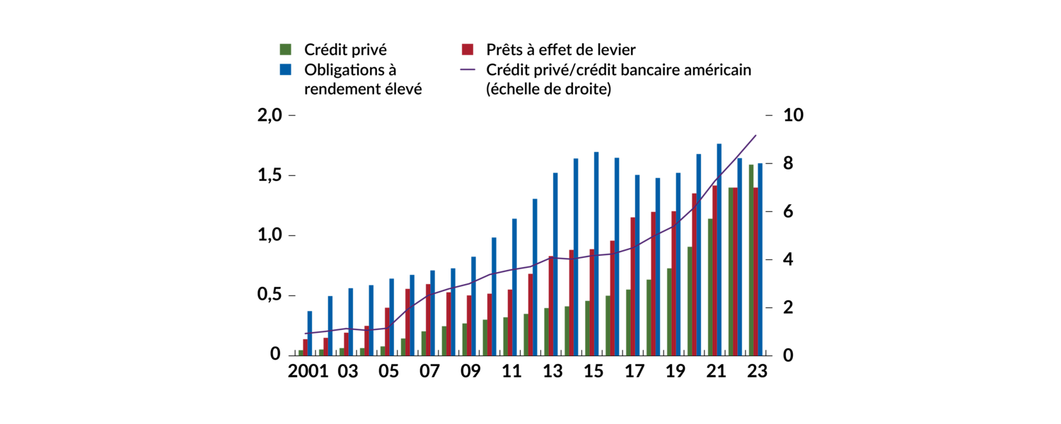 Le marché des obligations à rendement élevé a aujourd'hui un voisin agaçant (un véritable Ned Flanders). Ces dernières années, le marché du « crédit privé » est passé du statut de larve sans importance à celui de poisson gonflé. D'une ampleur comparable à celle des marchés américains des obligations à rendement élevé et des prêts à effet de levier cotés en Bourse, le crédit privé peut manœuvrer dans la dette des entreprises avec la finesse d'un taureau dans un magasin de porcelaine miniature.